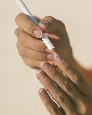 A French manicure is designed to have a little more impact than your basic natural nail. For our paint-free version, a whitening pencil is used for a semi-permanent effect— perfect for occasions or any time you want to feel a little extra polished. Just like with that little bit of shine, it’s amazing how much a bump of white can give to the look of your nails!